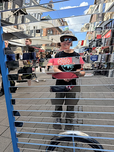 After our educational morning tour, we were set loose on a beautiful day to explore Copenhagen’s streets and famous sights. This framework of rotating mirrors enables people to stand facing each other on opposite sides and view their combined bodies.