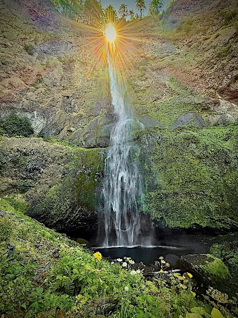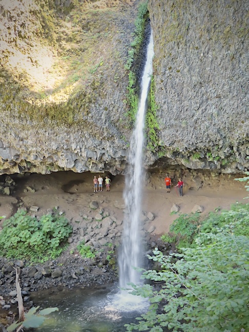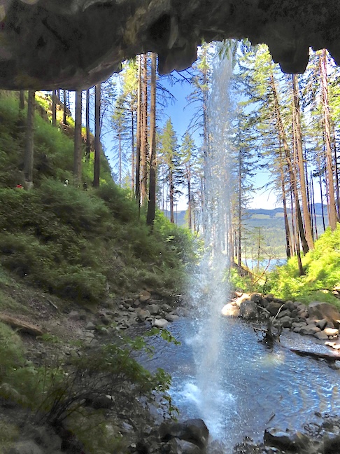 A steep, half-mile trail up the east side of Horsetail Falls led us to Ponytail Falls. Ponytail’s water appears to gush out of the side of the mountain and plunge 75 feet into an azure pool.