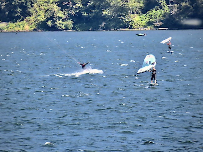 Outside on the Columbia River, it was gusting 15 to 25 mph, and the windsurfers, kite boarders, and wing boarders were having a blast. Oregon has cooler air on the coast that is drawn east through the gorge by warmer air inland, giving the Columbia River Gorge the most consistent winds anywhere. We finished most of our lunch and drove back to our hotel in Portland, content that we had made a small dent in discovering the many natural wonders that await visitors to this magical place.