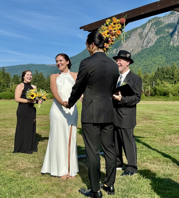 On 8/9/25, I had the great honor to officiate the wedding of my niece Nicole Lyon and her fiancé Stephen Arifin just outside Seattle, WA, near Snoqualmie.